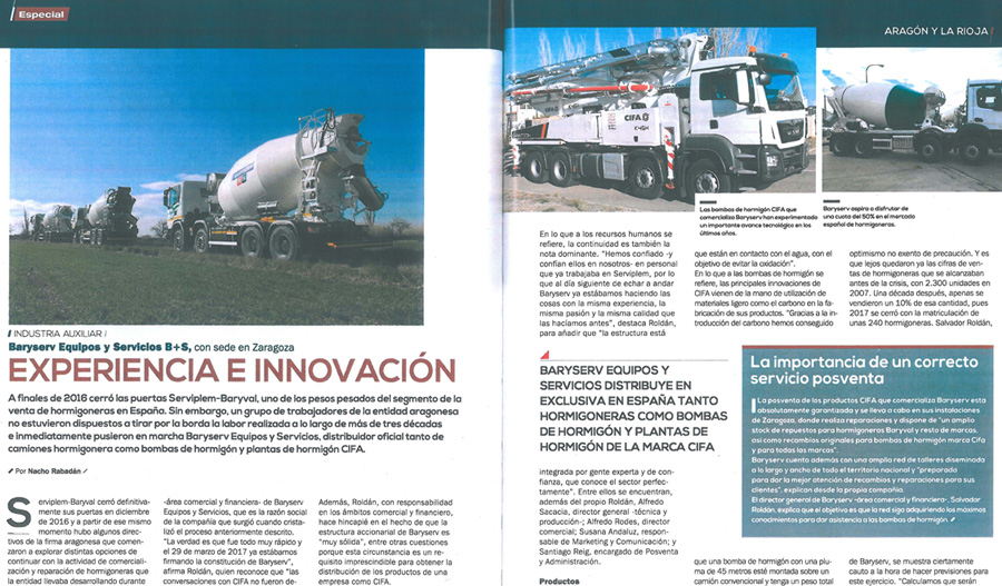 BARYSERV «B+S», entrevistada en Todotransporte Dec Team NOTICIAS, PRENSA Mostramos la entrevista que la revista Todotransporte realizó a BARYSERV «B+S» en su «Especial Aragón» de marzo 2018 RUVICAR CONFÍA EN BARYSE... Primera CIFA K45H con tec...